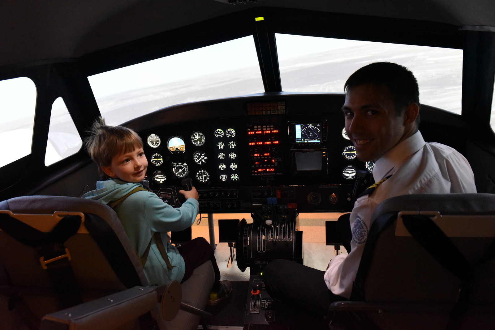 Następnie dzieci obejrzały z bliska model samolotu Iryda, który posłużył do wyjaśnienia sekretów budowy samolotów i wytłumaczenia zjawiska lotu. Dzieci miały również okazję obejrzenia symulatora lotów dzięki dr inż. Andrzejowi Majce pracownikowi Katedry Samolotów i Silników Lotniczych (Wydział Budowy Maszyn i Lotnictwa), który jako tato jednego z uczniów przybliżył im tajniki lotnictwa. .