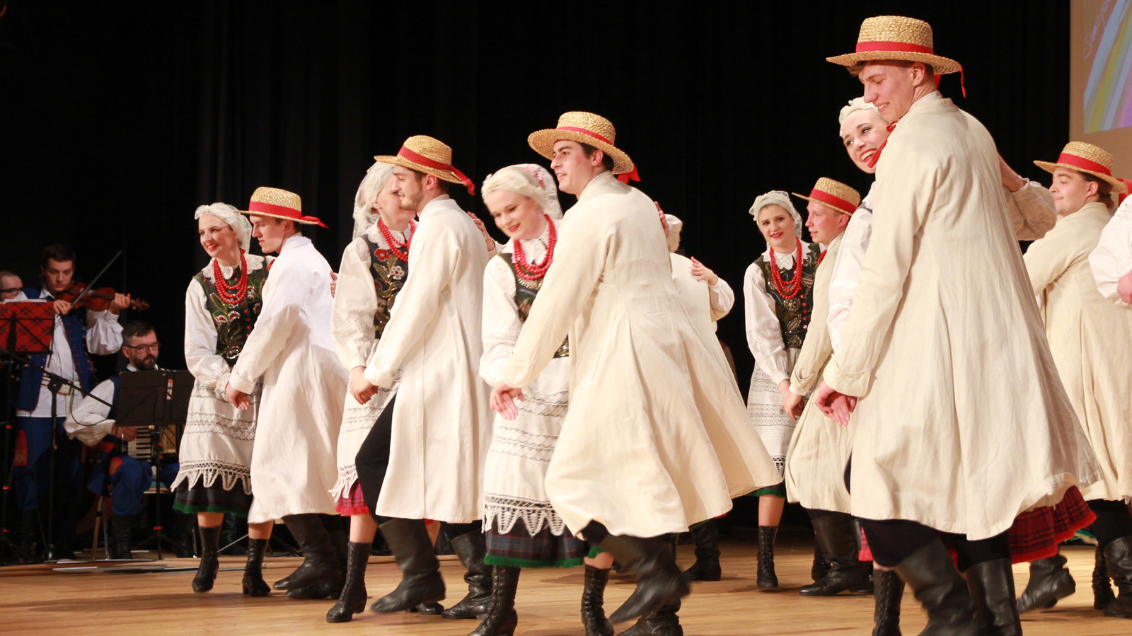 Podczas koncertu można było zobaczyć barwne tańce narodowe: poloneza i krakowiaka, zabawną polkę warszawską oraz dynamiczne tańce ludowe: sądeckie, Krakowiaków Wschodnich , przeworskie i rzeszowskie. Zespół zaśpiewał również piękne pieśni „Kochajmy się bracia mili”, „Kraj rodzinny matki mej”, „Maki” i „Olszynkę”.