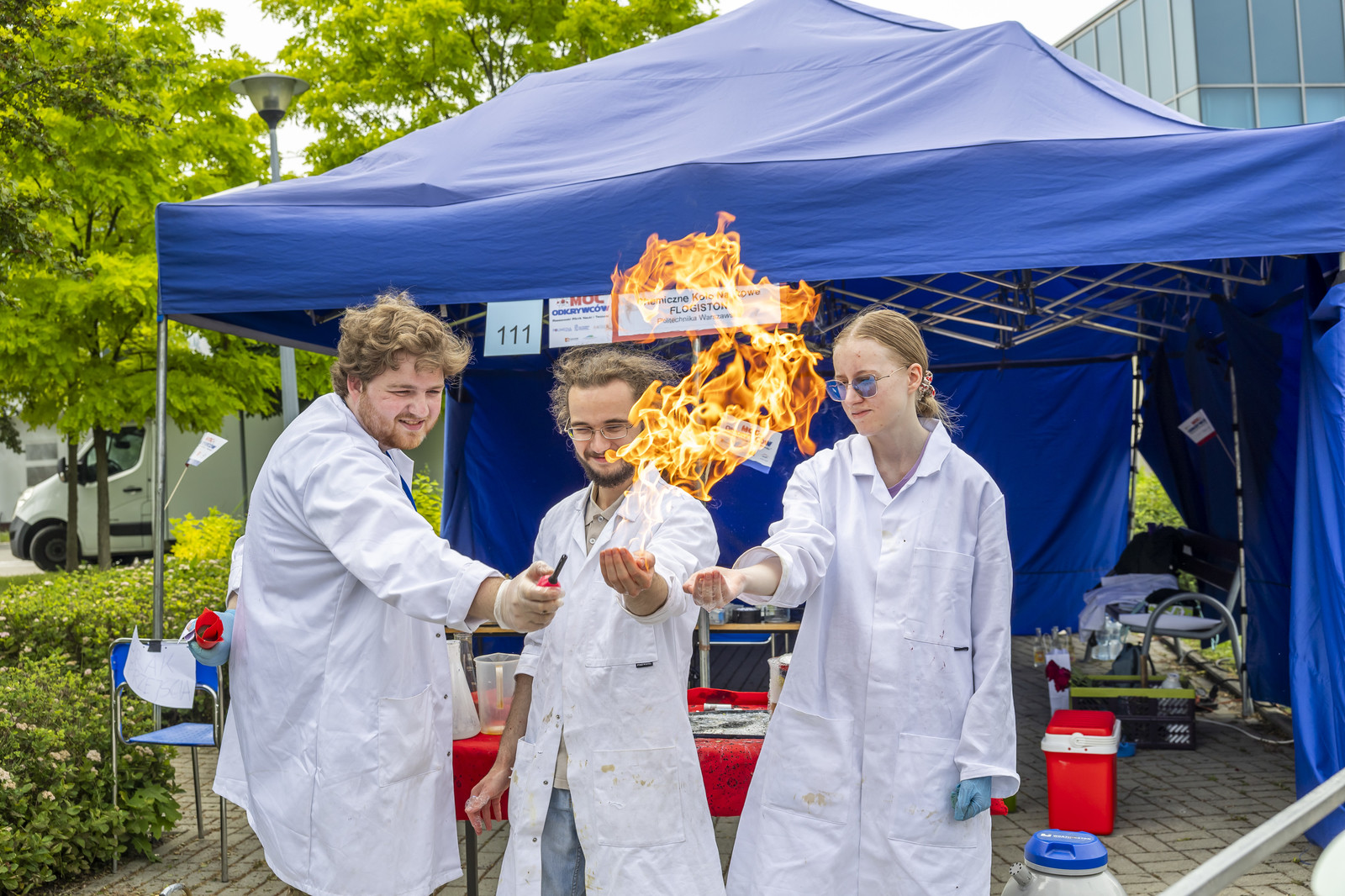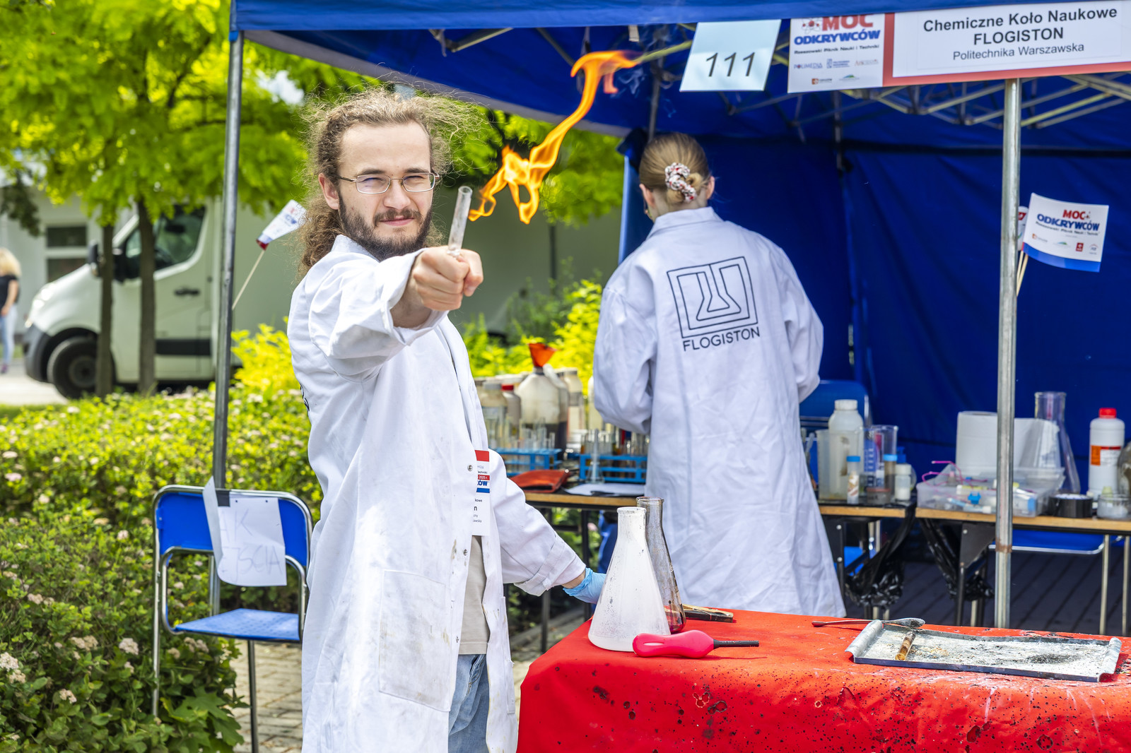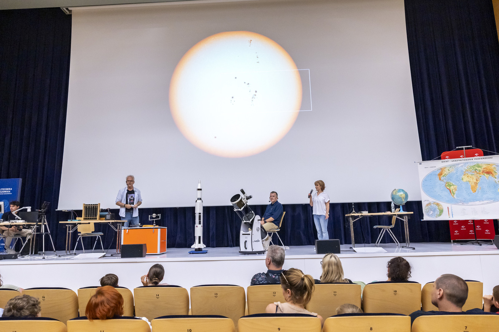 Na miłośników wybuchowych atrakcji czekali studenci Koła Naukowego „ESPRIT”, którzy przygotowali spektakularne pokazy chemiczne. Uczestnicy mogli również wysłuchać ciekawych wykładów –„Kosmiczną archeologię” opisywała Magdalena Ithilnar Stawniak, postać „Wyspiańskiego – Odkrywcy” przybliżyła Jolanta Bobala, a o „Prompt engineering, czyli jak dogadać się ze sztuczną inteligencją?” opowiedział Marcin Krawczyk. Mali i duzi odkrywcy spotkali się również z Magda „Cathia” Kozłowska zabrała małych i dużych odkrywców w podróż po galaktyce w ramach prelekcji nt. „Gwiezdnowojenna droga bohatera, czyli monomit w Gwiezdnych Wojnach”. Pokazy fizyczne Koła Naukowego FOTON („Jak fizyka wprawia świat w ruch”) oraz pokazy wysokich napięć i galeria lamp plazmowych Teslacoil jak zawsze przyciągnęły tłumy widzów. Na „Noc z gwiazdami”, czyli na finałowy pokaz pikniku zaprosili Małgosia Wilczak i Paweł Pasterz wraz z gościem specjalnym Maciejem Milczanowskim.