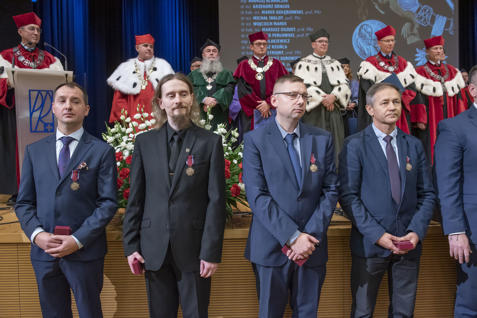 Medal „Zasłużonym dla Politechniki Rzeszowskiej” otrzymali: prof. dr hab. inż. Maria Włodarczyk-Makuła z Politechniki Częstochowskiej w uznaniu zasług dla rozwoju Politechniki Rzeszowskiej, dr hab. inż. Andrzej Majka, prof. PRz za długoletnią wzorową pracę naukową, dydaktyczną i organizacyjną, prof. dr hab. Tadeusz Paszkiewicz w uznaniu zasług dla rozwoju Politechniki Rzeszowskiej, mgr inż. Arkadiusz Surowiec za sumienne i rzetelne wypełnianie powierzonych obowiązków służbowych, prof. dr hab. Dov Bronisław Wajnryb za długoletnią wzorową pracę naukową, dydaktyczną i organizacyjną, dr inż. Robert Ziemba za długoletnią wzorową pracę naukową, dydaktyczną i organizacyjną. Medale wręczył rektor prof. dr hab. inż. Piotr Koszelnik.